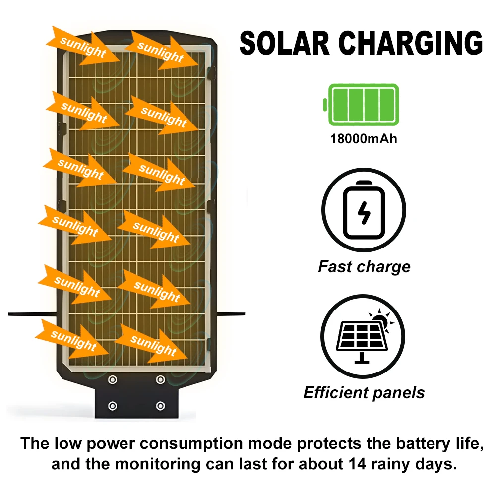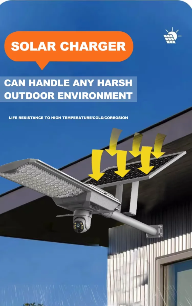 It runs on solar and stores power — keeps watching day and night even during blackout.