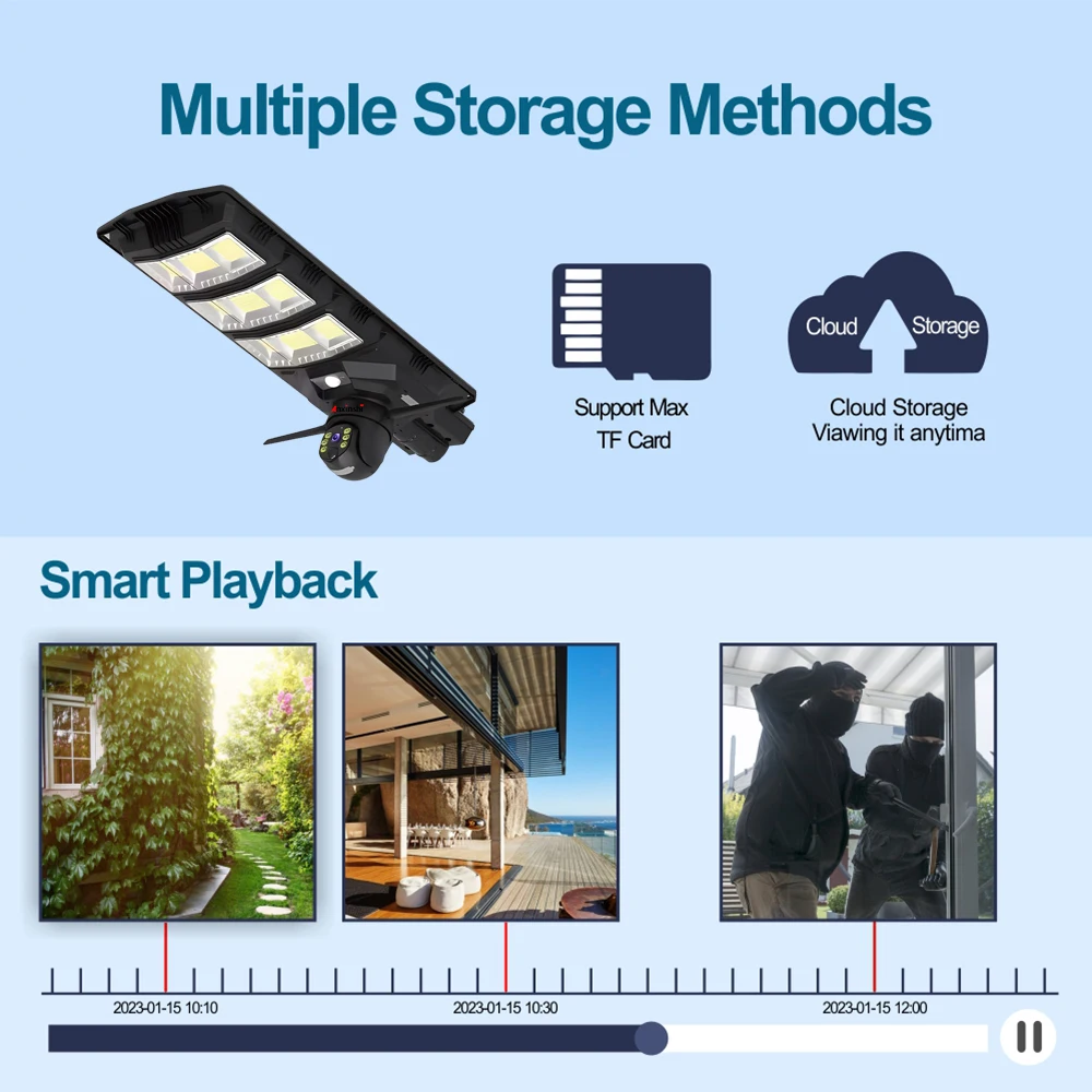 Smart motion sensors trigger both the camera and bright LED light — perfect for driveways, gates, or backyards.